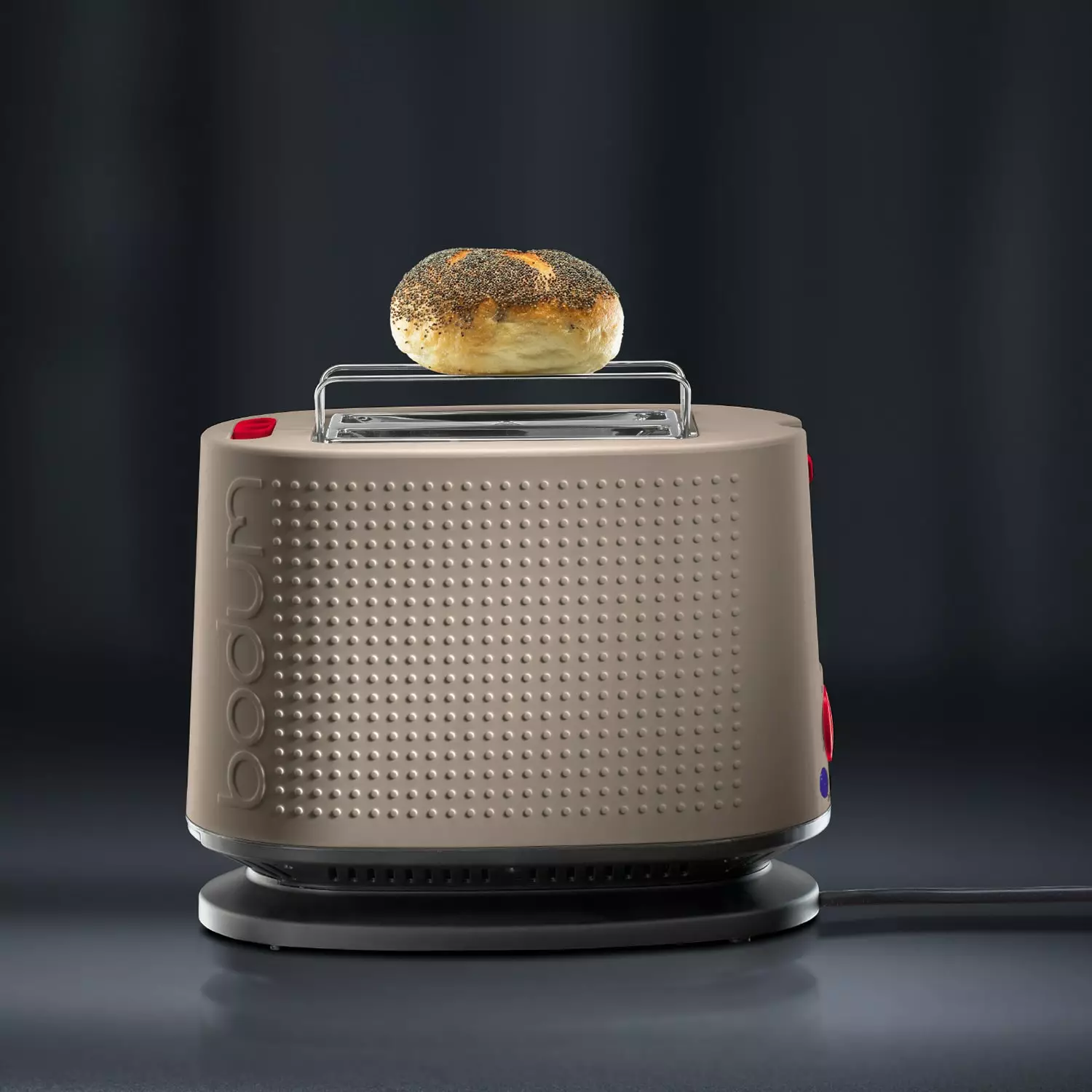 This toast from Danish Bodum gives you perfectly toasted bread. You adjust the strength with a adjustable button, and you just have to wait. Thanks to the built-in stand you can also heat up bagels or croissants. The design is thoughtful, it has a crumb tray that can easily be emptied and the cord can be rolled in. Has room for two bread slices.