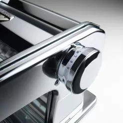 A wider variant of Marcatos classic pasta machine with adjustable lasagna plate thickness from 0.6 to 4.8 mm. Fettuccine (6 mm) and Tagliolini (1.5 mm) rollers included. Max lasagna plate width: 18 cm. Table bracket included.