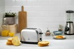 Manhattan Steel is a stylish toaster in stainless steel. Thanks to the High rise-function, you won’t burn your fingers when picking the slice of bread from the toaster. Selection of toasting 1-6. Practical crumb box for simple clensing. Automatic centering of the slices. 1.1 m cord. Effect: 700 W.